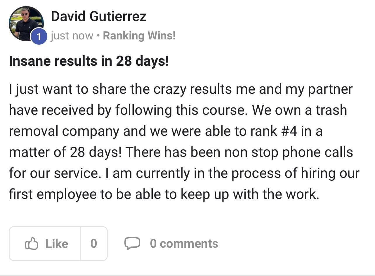 You can rank your business top 5 in as little as 30 days.